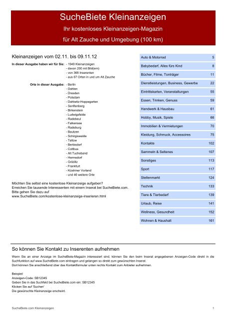 Suchebiete Kleinanzeigenzeitung Alt Zauche Kostenlose